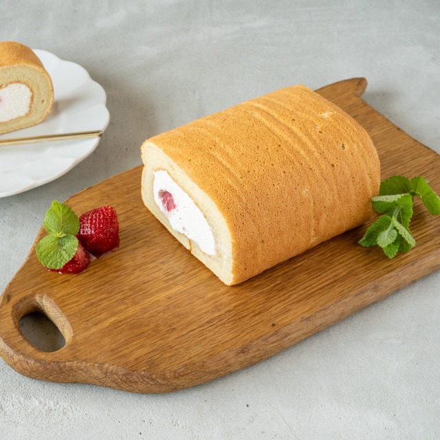 白いクリームの糸島いちごロールケーキ